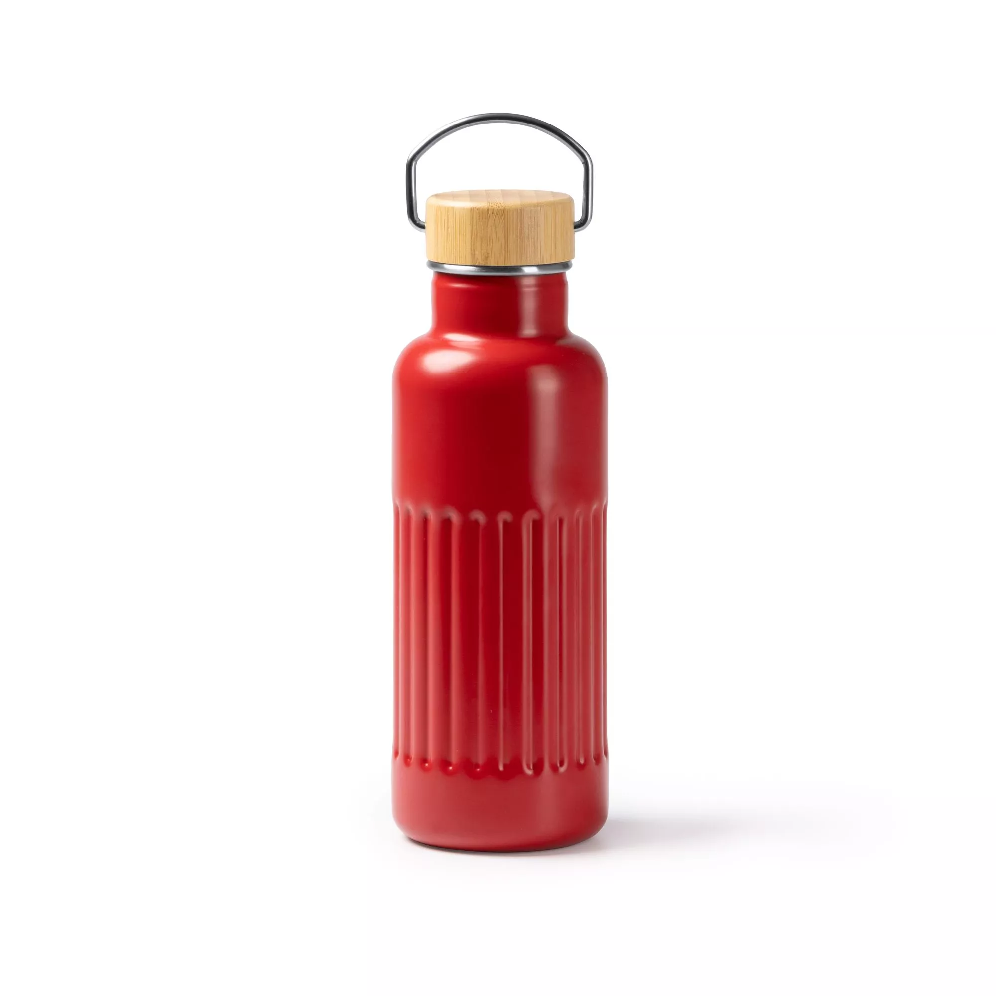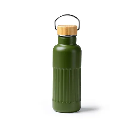 Бутылка-термос из переработанной нержавеющей стали с двойными стенками и бамбуковой крышкой. Емкость: 500 мл.