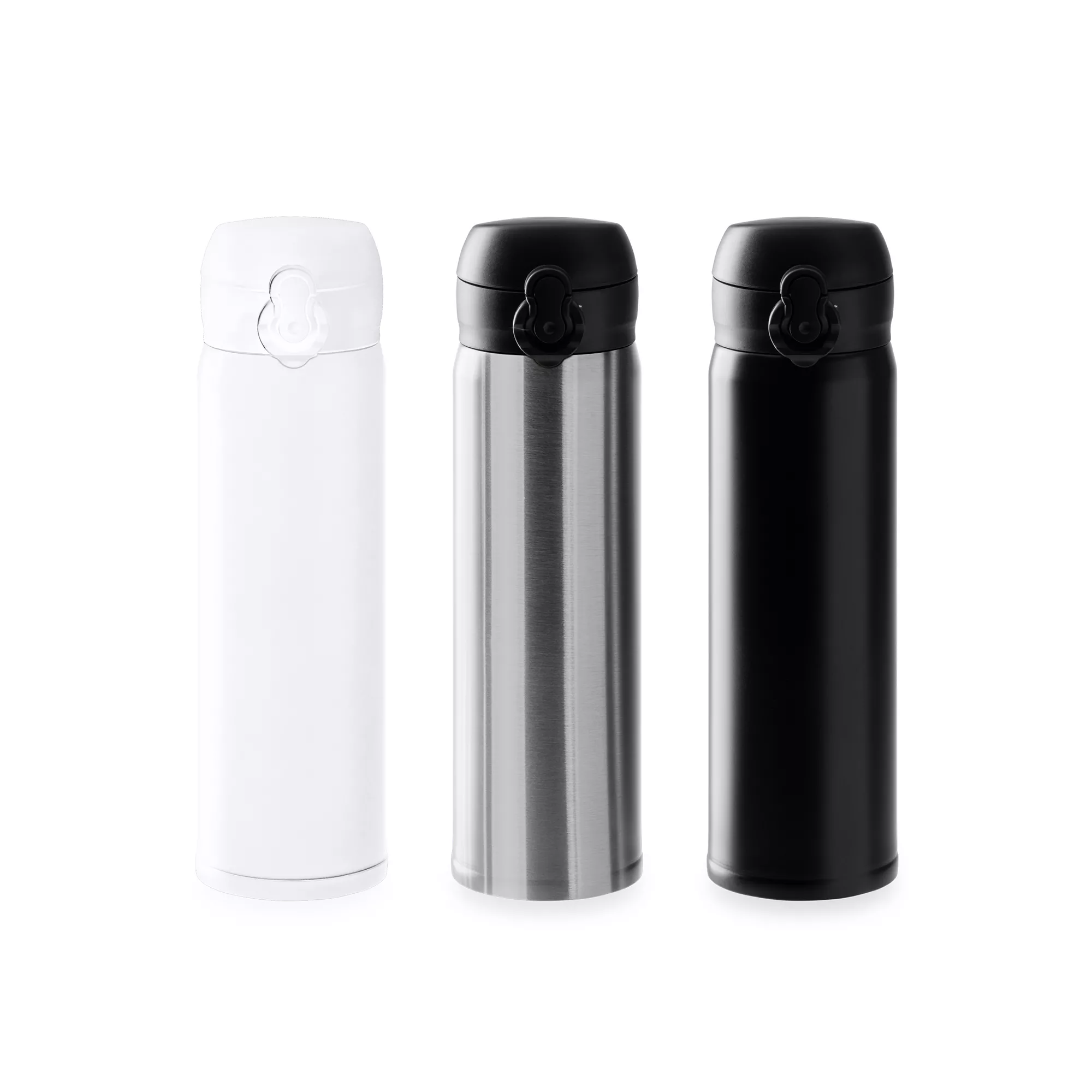 Термос с двойными стенками из нержавеющей стали 304. Кнопка открытия с предохранительным замком. Емкость 450 мл. С термосом Palmer вы не потеряете ни капли. Белый цвет подходит для сублимации.