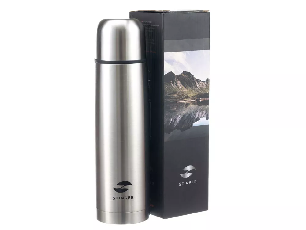 ТЕРМОC С ЧЕХЛОМ STINGER 0,8 л НАЗНАЧЕНИЕ Термос STINGER предназначен для употребления пищевых жидкостей (воды, напитков) как в горячем, так и в холодном состоянии. ХАРАКТЕРИСТИКИ Объём: 0,8 л Вес: 0,452 кг Время сохранения тепла: 24 часа Время сохранения холода: 24 часа Метод изоляции: вакуум Размеры • Высота – 29,1 см • Диаметр горлышка – 4,5 см • Диаметр дна – 8,1 см • Ширина (с учетом ручки) – 13,9 см Тип крышки: винтовая Тип пробки: винтовая крышка-пробка с кнопкой Тип горлышка: узкое Тип подачи наполнения: кнопка подачи/блокировки воды Цвет: серебристый Материалы • Корпус: нержавеющая сталь, класс AISI 304 18/8 Stainless Steel • Колба: нержавеющая сталь, класс AISI 304 18/8 Stainless Steel • Крышка: нержавеющая сталь, класс AISI 304 18/8 Stainless Steel, пищевой пластик, не содержит бисфенол А (BPA free) • Прокладки-уплотнители: пищевой силикон ОСОБЕННОСТИ • Двойные стенки с вакуумной изоляцией отлично сохраняют температуру долгое время, гарантируют безопасность прикосновения к очень горячим и холодным напиткам. • Внешний и внутренний корпус из прочной пищевой нержавеющей стали AISI 304 18/8. • Пластиковые детали не содержат Бисфенол А (BPA FREE). • Герметичная крышка-пробка надежно защищает от случайного открывания и проливания жидкости. • Термочехол в комплекте позволяет сохранять температуру еще дольше. • Идеально сохраняет вкус и аромат любимых напитков.