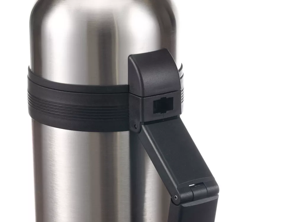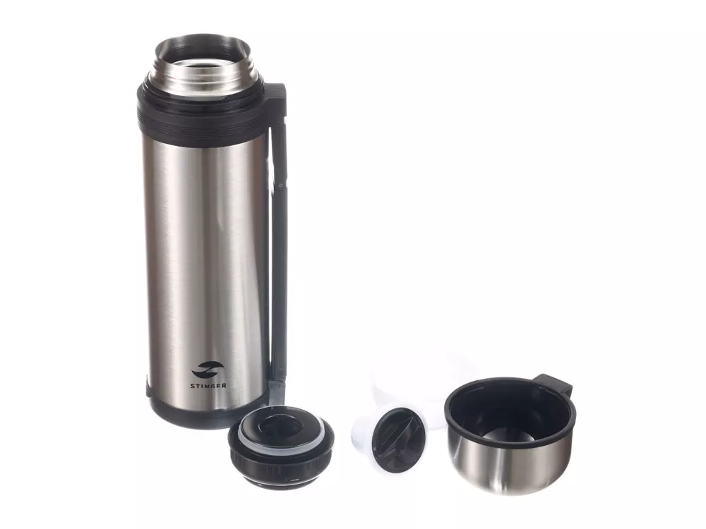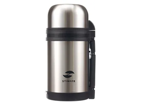 ТЕРМОC С РУЧКОЙ STINGER 1,8 л НАЗНАЧЕНИЕ Термос STINGER предназначен для употребления пищевых жидкостей (воды, напитков) как в горячем, так и в холодном состоянии. ХАРАКТЕРИСТИКИ Объём: 1 л / 1,5 л / 1,8 л Вес: 0,674 кг / 0,850 кг / 0,958 кг Время сохранения тепла: 24 часа Время сохранения холода: 24 часа Метод изоляции: вакуум Размеры • Высота – 35,6 см • Диаметр горлышка – 7,5 см • Диаметр дна – 10,9 см • Ширина (с учетом ручки) – 12,2 см Тип крышки: винтовая Тип пробки: винтовая крышка-пробка с фиксатором Тип горлышка: широкое Тип подачи наполнения: винтовой фиксатор подачи/блокировки воды Цвет: серебристый Материалы • Корпус: нержавеющая сталь, класс AISI 304 18/8 Stainless Steel • Колба: нержавеющая сталь, класс AISI 304 18/8Stainless Steel • Крышка: нержавеющая сталь, класс AISI 304 18/8Stainless Steel, пищевой пластик, не содержит бисфенол А (BPA free) • Дополнительная чашка: пищевой пластик, не содержит бисфенол А (BPA free) • Прокладки-уплотнители: пищевой силикон ОСОБЕННОСТИ • Двойные стенки с вакуумной изоляцией отлично сохраняют температуру долгое время, гарантируют безопасность прикосновения к очень горячим и холодным напиткам. • Внешний и внутренний корпус из прочной пищевой нержавеющей стали AISI 304 18/8. • Пластиковые детали не содержат Бисфенол А (BPA FREE). • Герметичная крышка-пробка надежно защищает от случайного открывания и проливания жидкости. • Эргономичная ручка и съемный регулируемый ремень для удобной переноски. • Дополнительная чашка в комплекте. • Идеально сохраняет вкус и аромат любимых напитков.