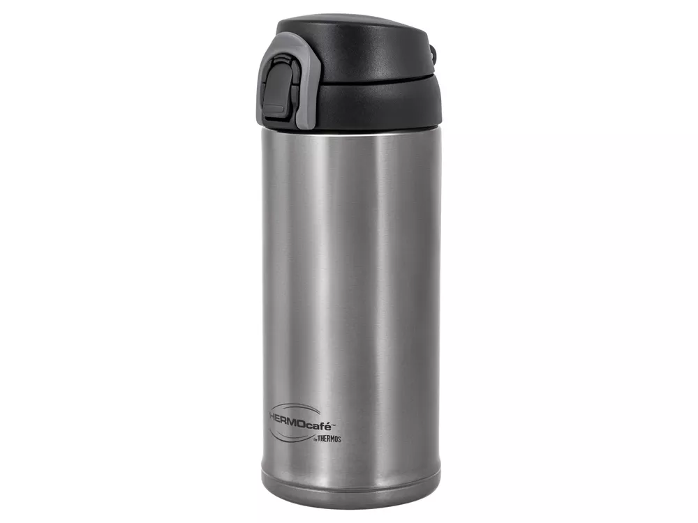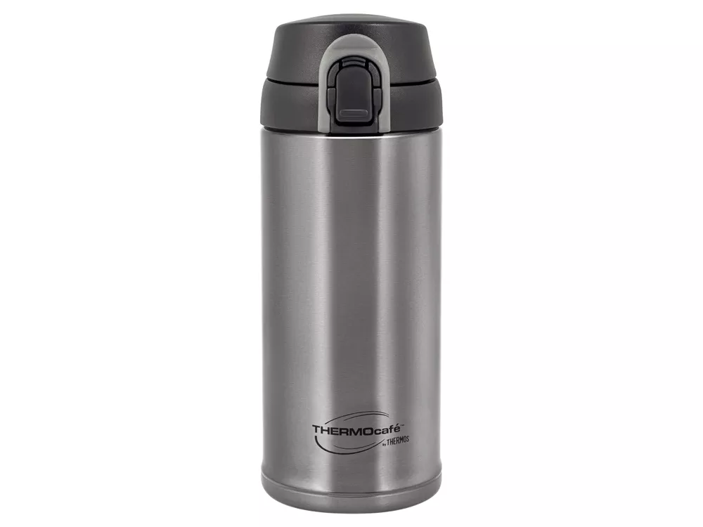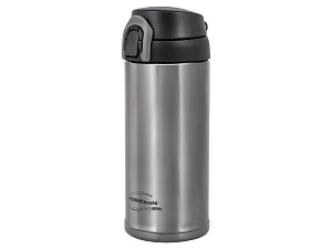 Термос для напитков с откидной крышкой - комфортное решение для любителей чая или кофе в дороге. Компактные размеры делают термос удобным для хранения в сумке, а защиту от проливания напитка обеспечивает дополнительный фиксатор кнопки открывания. Откидная крышка, фиксирующаяся при открывании в положении 180о, позволяет пользоваться термосом одной рукой, что весьма удобно для автолюбителей. Стильным термос делает не только форма, но и благородный цвет темной стали. Модель подходит для подстаканников велосипедов и автомобилей. Держит тепло 8ч. Держит холод 12ч.