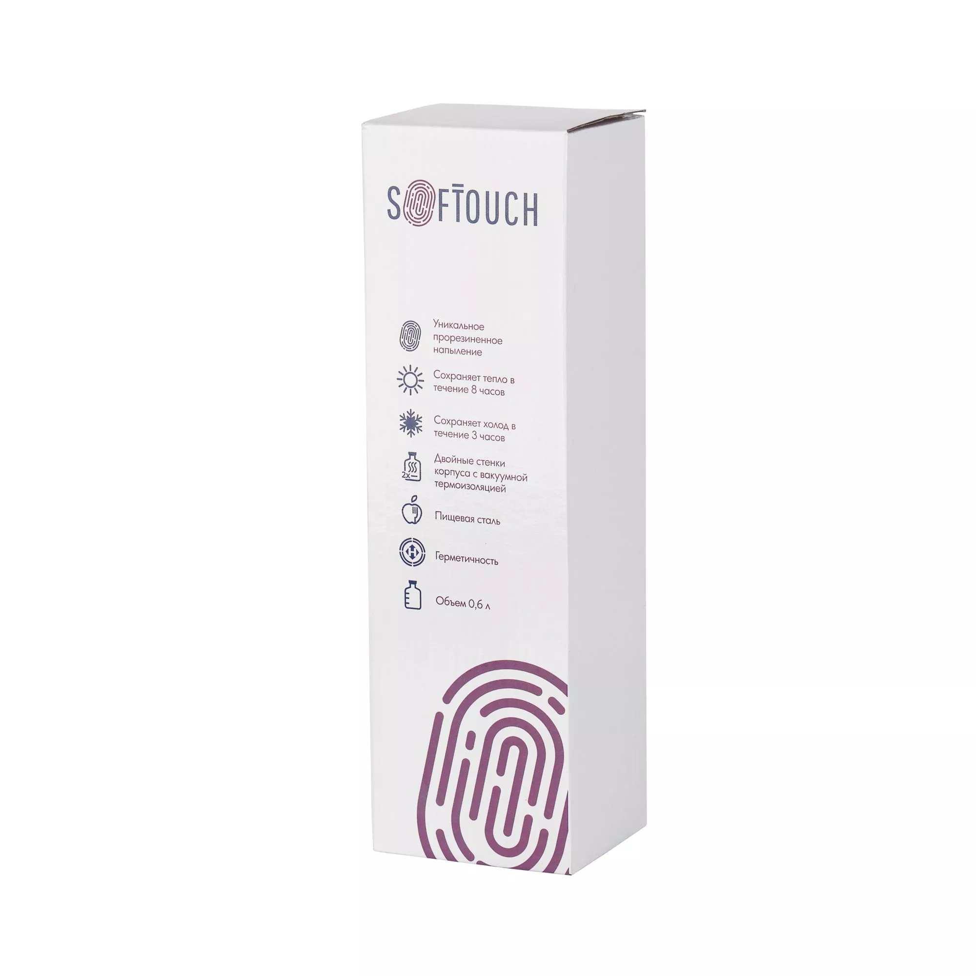 Внешняя стенка термоса изготовлена из нержавеющей стали с уникальным прорезиненным напылением soft-touch, которое эффектно персонализируется по окружности встык. Внутренняя стенка выполнена из высококачественной пищевой, нержавеющей стали.
