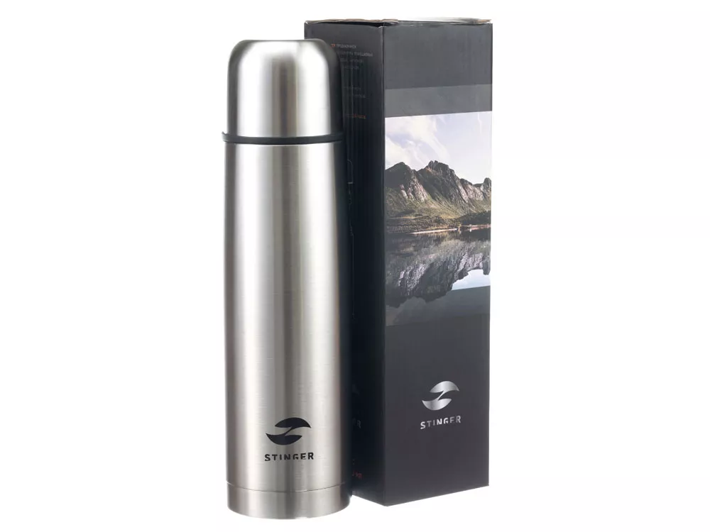 ТЕРМОC STINGER 0,8 л НАЗНАЧЕНИЕ Термос STINGER предназначен для употребления пищевых жидкостей (воды, напитков) как в горячем, так и в холодном состоянии. ХАРАКТЕРИСТИКИ Объём: 0,8 л Вес: 0,452 кг Время сохранения тепла: 24 часа Время сохранения холода: 24 часа Метод изоляции: вакуум Размеры • Высота – 29,1 см • Диаметр горлышка – 4,5 см • Диаметр дна – 8,1 см • Ширина (с учетом ручки) – 13,9 см Тип крышки: винтовая Тип пробки: винтовая крышка-пробка с кнопкой Тип горлышка: узкое Тип подачи наполнения: кнопка подачи/блокировки воды Цвет: серебристый Материалы • Корпус: нержавеющая сталь, класс AISI 304 18/8 Stainless Steel • Колба: нержавеющая сталь, класс AISI 304 18/8 Stainless Steel • Крышка: нержавеющая сталь, класс AISI 304 18/8 Stainless Steel, пищевой пластик, не содержит бисфенол А (BPA free) • Прокладки-уплотнители: пищевой силикон ОСОБЕННОСТИ • Двойные стенки с вакуумной изоляцией отлично сохраняют температуру долгое время, гарантируют безопасность прикосновения к очень горячим и холодным напиткам. • Внешний и внутренний корпус из прочной пищевой нержавеющей стали AISI 304 18/8. • Пластиковые детали не содержат Бисфенол А (BPA FREE). • Герметичная крышка-пробка надежно защищает от случайного открывания и проливания жидкости. • Идеально сохраняет вкус и аромат любимых напитков.