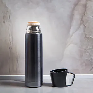 Вакуумный термос GRAPHITE с двойными стальными стенками выделяется стильной отделкой – анодированной, но при этом матовой.