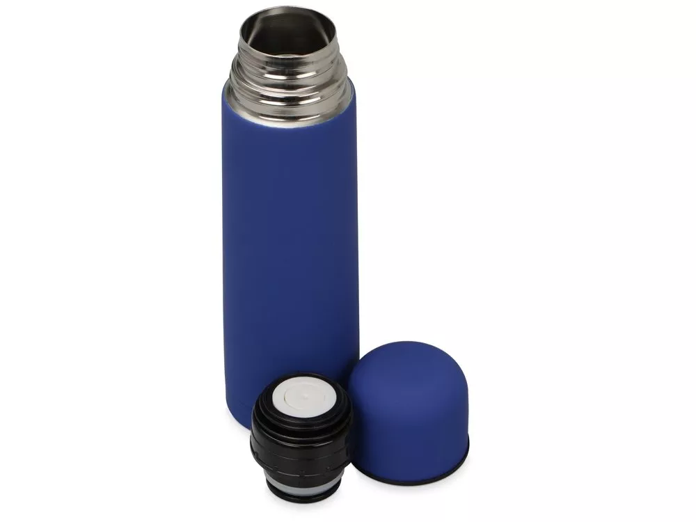 Универсальный термос с мягким прорезиненным покрытием софт-тач. Удобно и приятно держать в руке. Благодаря вакуумной изоляции и двойным стенкам сохраняет напитки горячими более 6 часов, а теплыми - в течение 24 часов. Герметичный клапан открывается и закрывается по легкому нажатию. Термос поставляется в дорожном чехле из искусственной кожи.