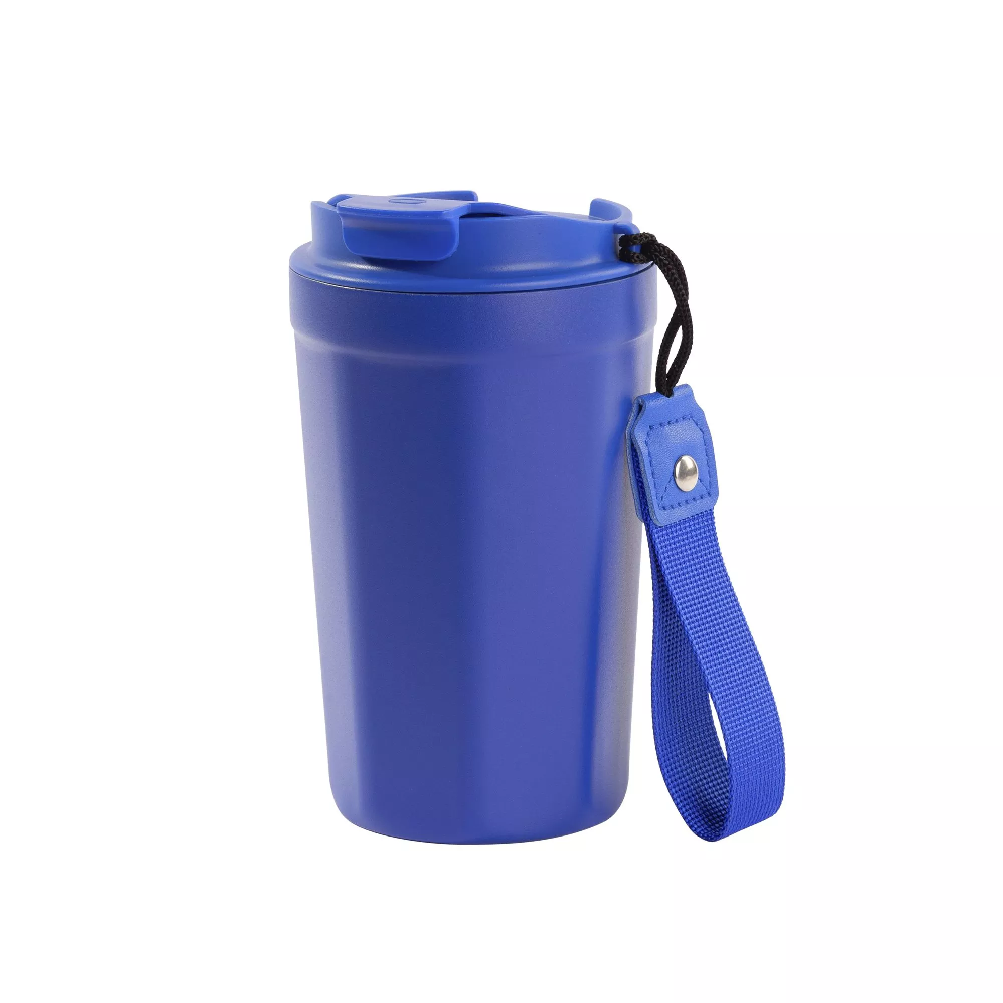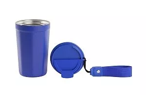 Герметичный термостакан с восьмигранной формой внешней стенки. Материал колбы 304 сталь, внешнее покрытие - порошковая краска (пудра). Крышка из полипропилена на резьбе с силиконовым уплотнением, фиксация клапана в крайних положениях.