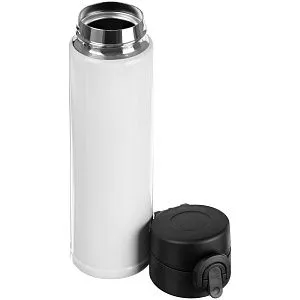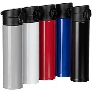 Термостакан Eimer в ровном цилиндрическом корпусе — эстетически приятная форма, на которую удобно делать круговое нанесение. Крышку с отщелкивающимся клапаном легко открыть одной рукой.