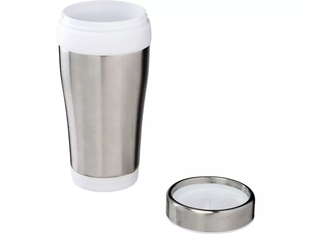 Если вы хотите выпить утренний кофе во время путешествия или насладиться чашечкой приятного чая в офисе, стакан Elwood из переработанной нержавеющей стали, сертифицированной по стандарту RCS, станет отличным решением. Изолированные двойные стенки стакана сохраняют напитки холодными или горячими в течение длительного времени. Благодаря закручивающейся крышке с возможностью открывания большим пальцем, напитки легко пить. Сочетание нержавеющей стали и пластика делает стакан очень прочным, устойчивым к коррозии и простым в уходе. Объем: 410 мл. Recycled stainless steel, Recycled Plastic.