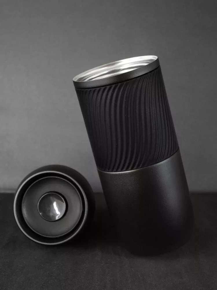 Силиконовая манжета позволяет комфортно держать стакан и в дождь, и в жару, и в холод. С ней стакан не выскользнет из рук, а ладони не замерзнут от соприкосновения с металлом зимой.
