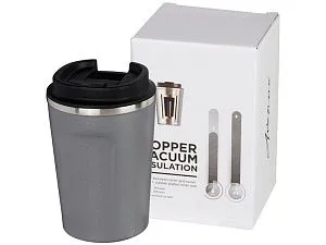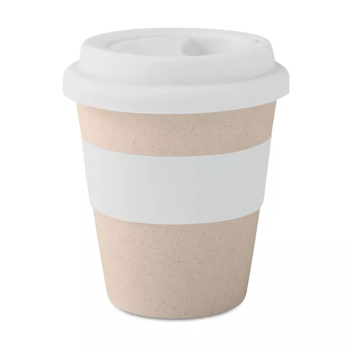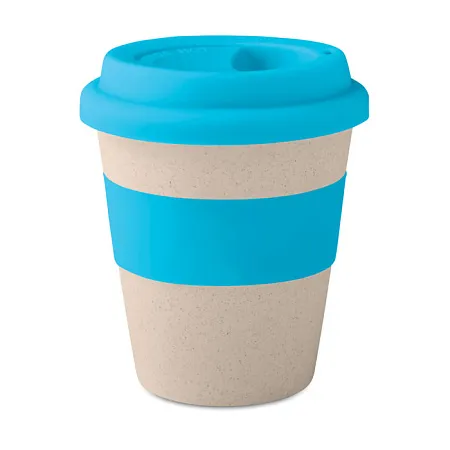 Термостакан одностенный из смеси 40% бамбукового волокна и 60% полипропилена с силиконовой крышкой и кольцом. Может становиться горячим в силу того, что является одностенчатым. Емкость 350 мл.