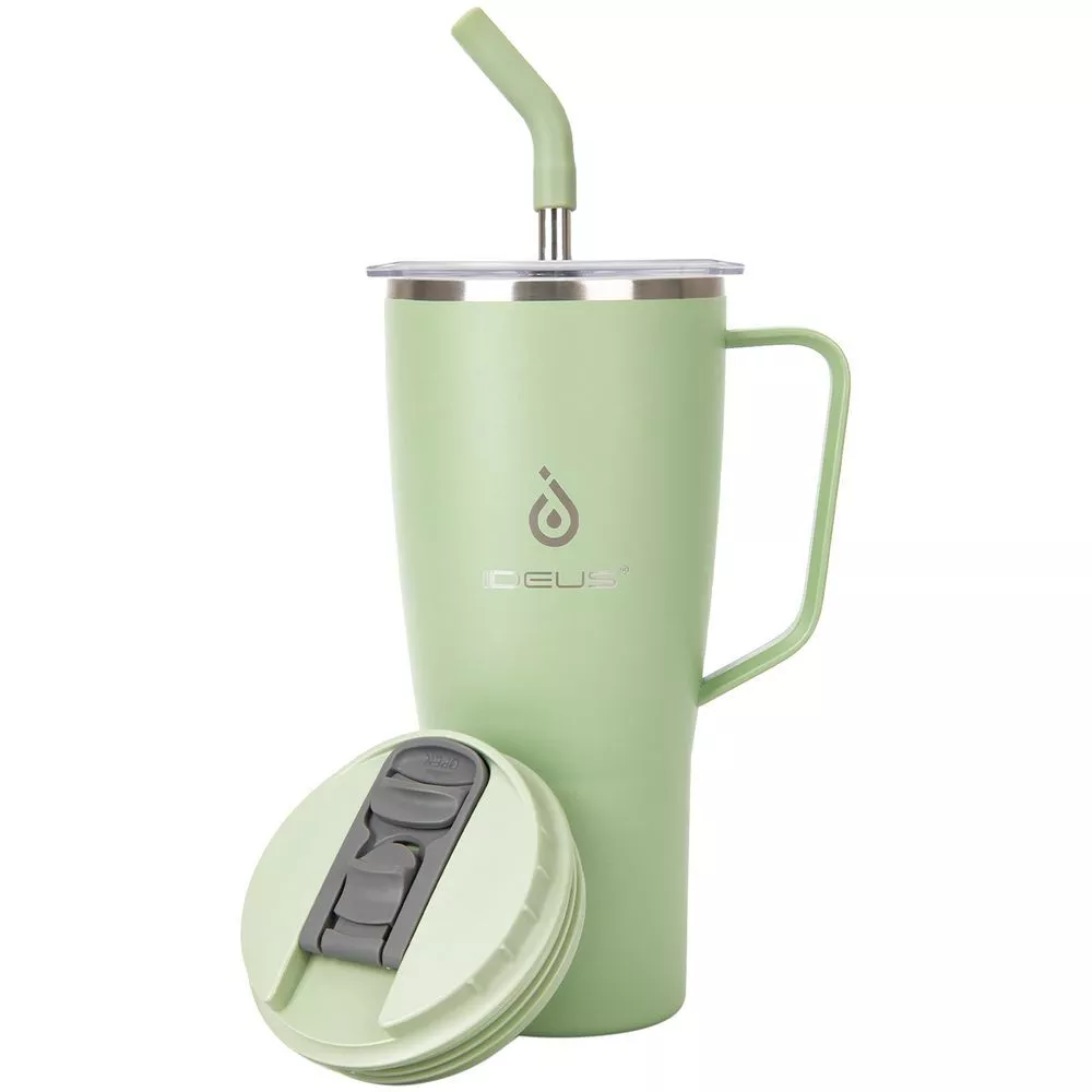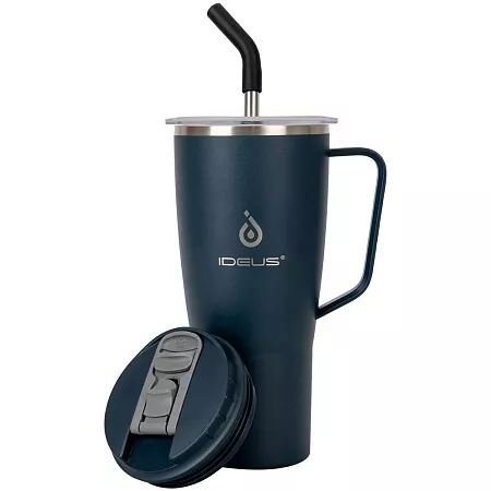 - 2 крышки в комплекте: одна на 100% герметичная с механизмом блокировки отверстия для питья, вторая — с отверстием для трубочки