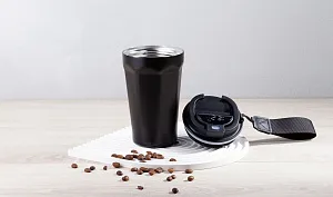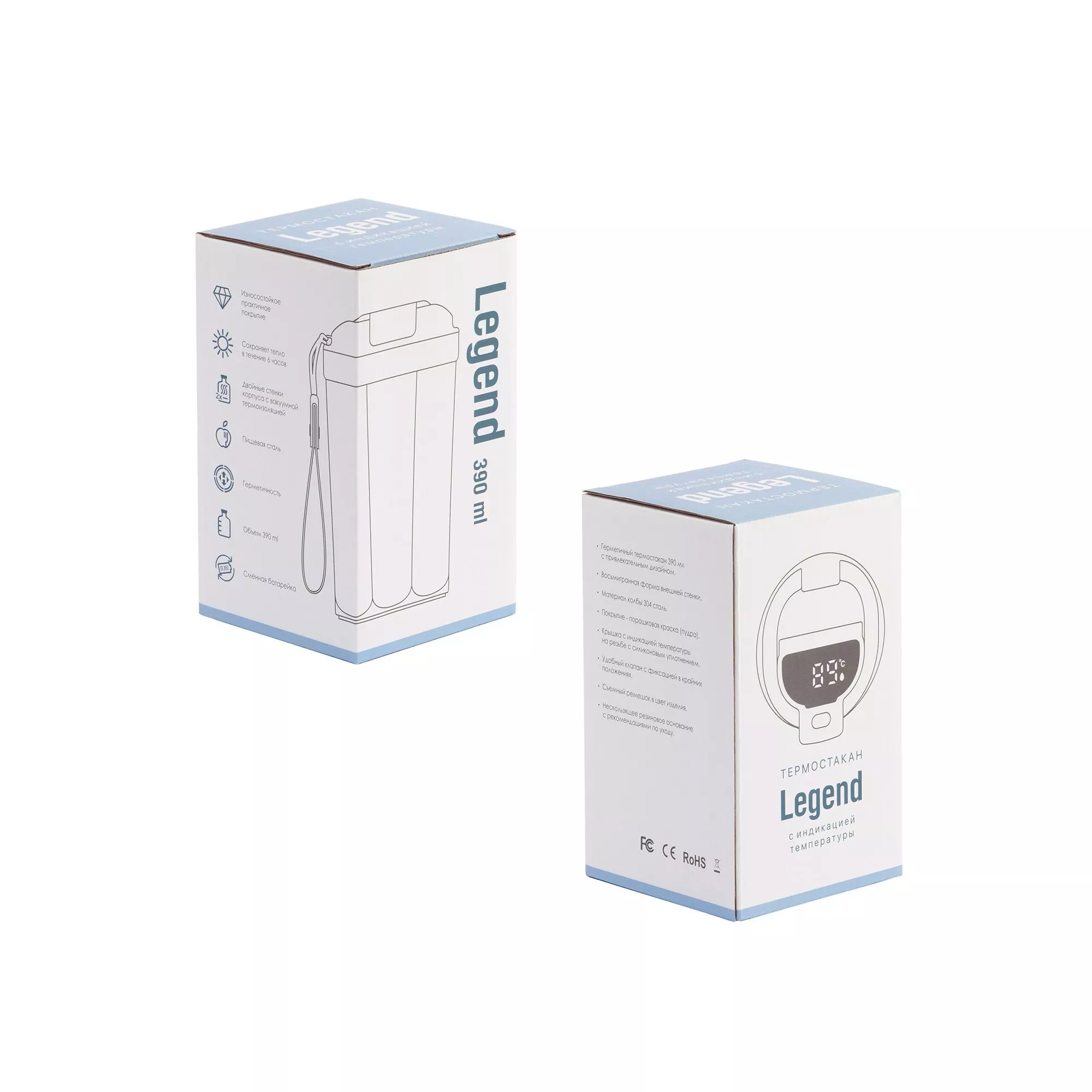 Термостакан "Legend" - создан, чтобы стать легендой. Оригинальная граненая форма с продуманной эргономикой. Вверху расширение для удобного хвата, внизу грани переходят в ровное основание диаметром 6,7 см для размещения в подстаканнике. Порошковая краска защищает от механических повреждений, сохраняет безупречный вид изделия. Колба из пищевой нержавеющей 304 стали. Встроенная индикация температуры напитка с сенсорным управлением. Крышка получила разборную конструкцию, батарейку (тип CR2032) легко заменить. В комплекте ручка (длина 7,5 см), оптимально подходит для поездок на самокате/велосипеде. Поставляется в индивидуальной фирменной коробке.