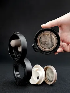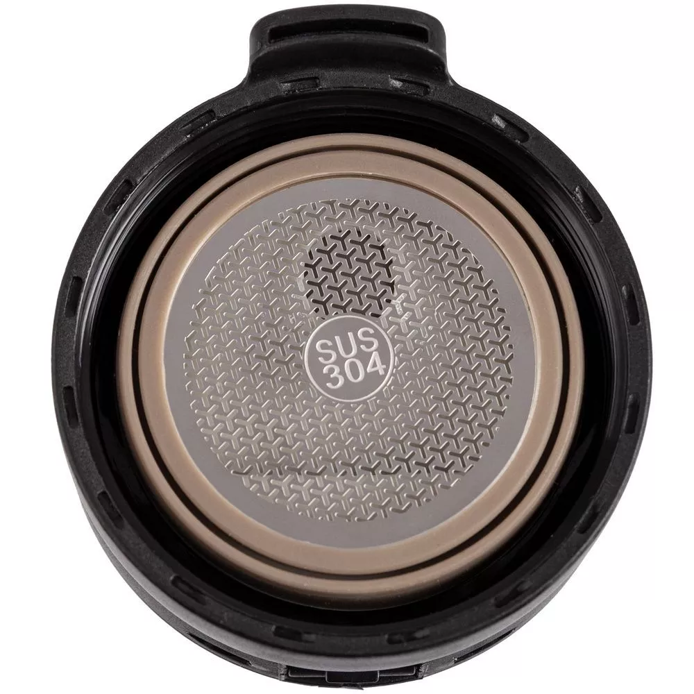 Двухслойная вакуумная конструкция из нержавеющей стали внутри и снаружи. Герметичная откидная крышка-клапан с ситечком.