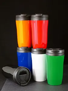 Двухслойная конструкция из пластика внутри и снаружи. Герметичная завинчивающаяся крышка с откидным клапаном для питья.