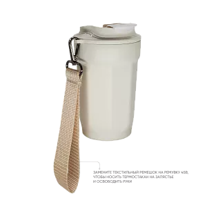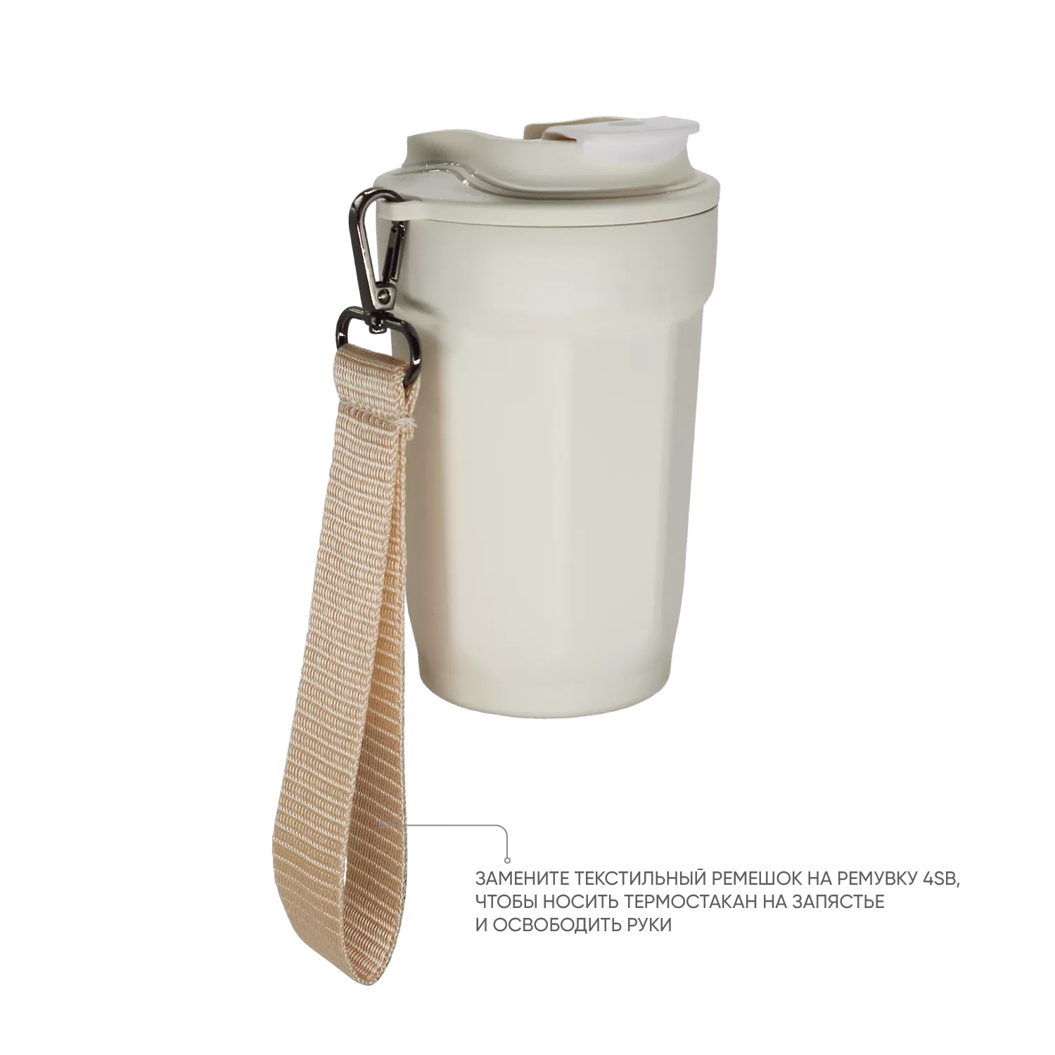 Для максимального удобства использования термостакан оснащён съемным текстильным ремешком для переноски. Ремешок в комплекте может быть заменен на трендовую ремувку 4sb flat , на которую можно разместить логотип или слоган компании.