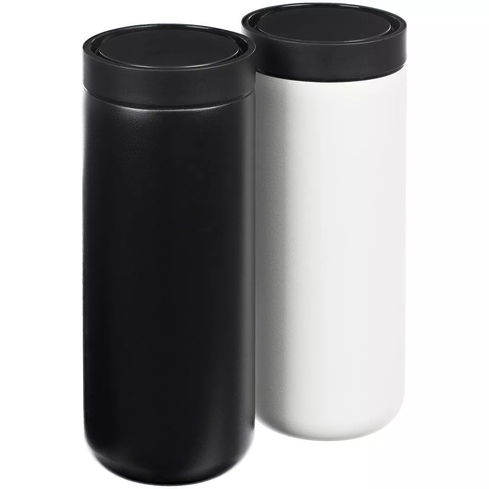 Лаконичный термостакан с удобным клапаном, который открывается и закрывается одним нажатием, — и пить можно с любой стороны.