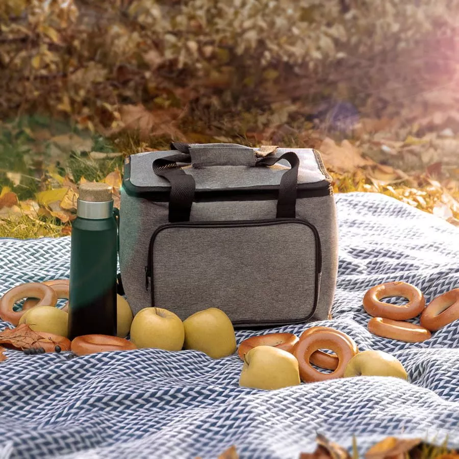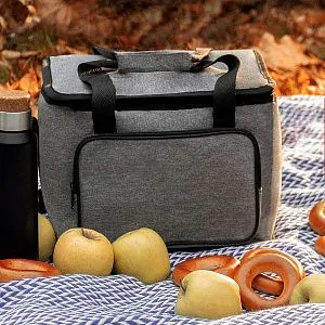 Сумка-холодильник с прочными двойными ручками,лямкой на плечо и внешним карманом на молнии nbsp;из прочного меланжевого полиэстра 600D nbsp;Внутреннее отделение из nbsp;PEVA.