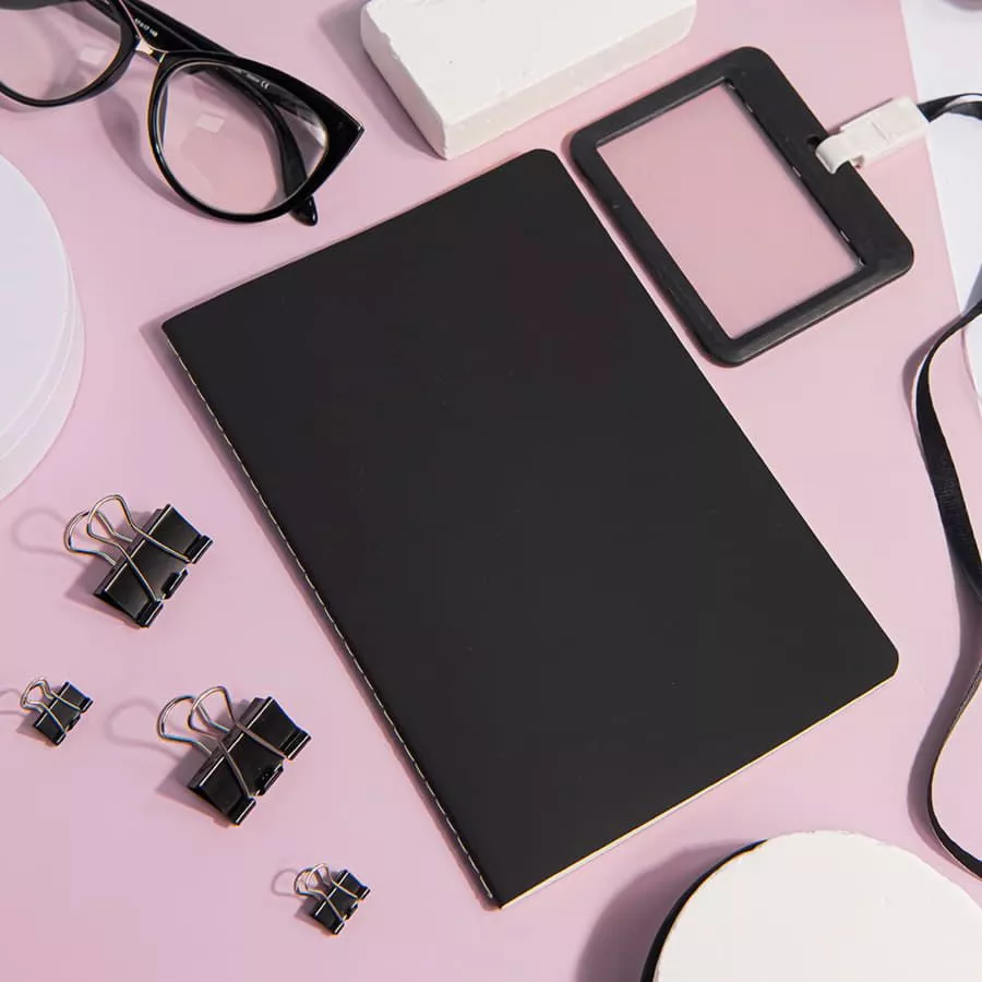 Цвет обложки черныйЦвет обреза и прошивки на корешке черныйРазмер 140*210 мм, переплет мягкийОбложка PU Silk TouchСкругленные углыБумага кремовая, плотность 70г м2Форзац нахзац кремовые64 страницы