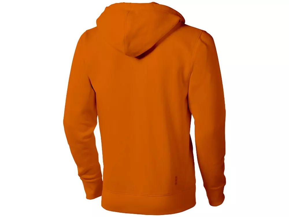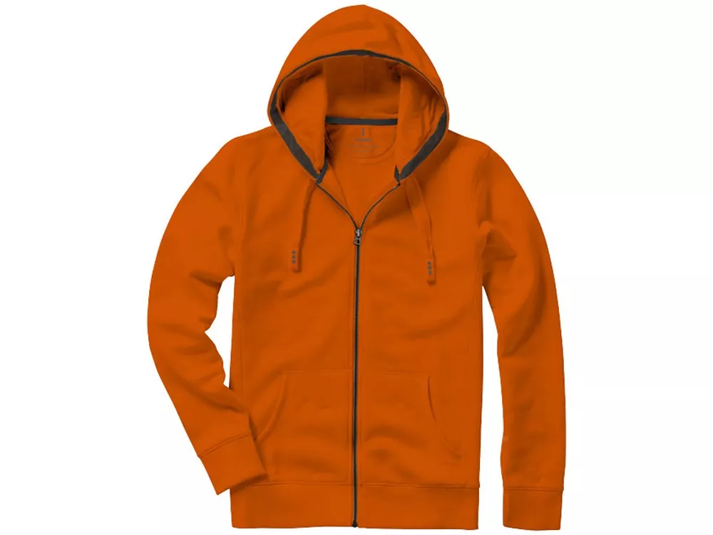 Свитер Arora с капюшоном и застежкой-молнией на всю длину. Стандартный покрой. Резинка 2х2 на боковых вставках, поясе и манжетах. Карман кенгуру. Мужская и женская модели с завязками на капюшоне. Подкладка внутри капюшона. Подкладка на полумесяце. Атласная лента внутри горловины. Принт лого сзади в тон изделия. Серебристые люверсы с лого. Трикотаж: 80% хлопок и 20% полиэстер, чесаная внутренняя сторона. 300 г/м².