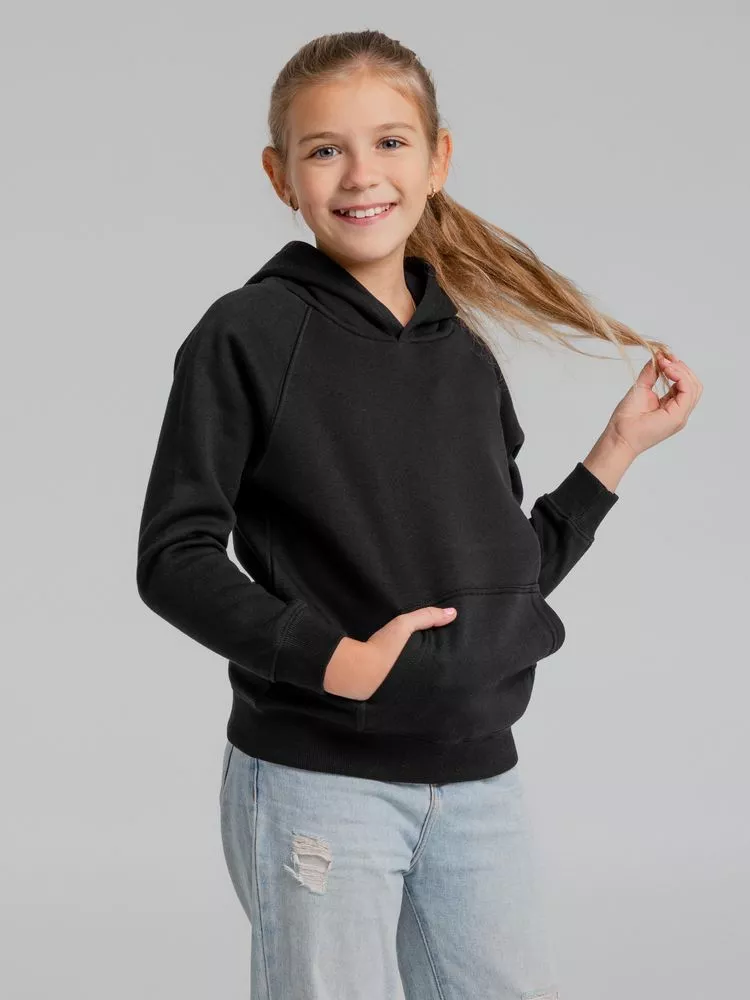Детская толстовка с капюшоном, рукавами реглан и карманом-кенгуру.