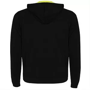 Толстовка из футера без начеса с деталями неонового цвета. Молния по центру с контрастным бегунком неонового цвета. Капюшон с контрастной неоновой подкладкой из микроперфорированного полиэстера, а также шнурком и металлическими люверсами. Длинные рукава.