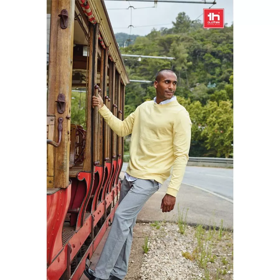 Унисекс свитшот из футера без начеса полуприлегающего силуэта. 1х1 риб на вороте, манжетах и по низу изделия. Усиливающая тесьма по вороту.