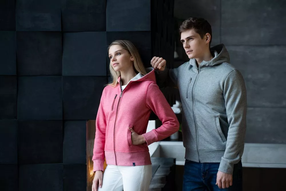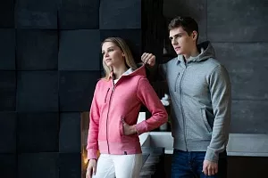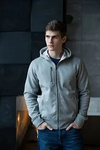 Мужская толстовка на молнии с капюшоном. Изготовлена из комбинации двух материалов: снаружи — качественный хлопок, внутри — флис серого цвета. Уплотняющая резинка вокруг манжет и по низу. Два боковых и два внутренних кармана, карман с молнией на груди.