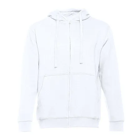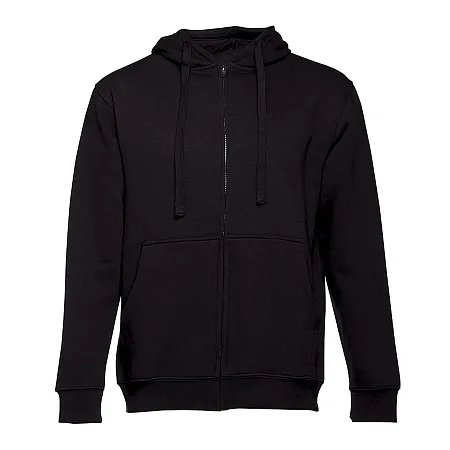 Толстовка с капюшоном на молнии. Внутренняя сторона с начёсом. Подкладка в капюшоне из тонкого трикотажа в тон основного полотна. Потайная центральная молния. Манжеты и низ изделия обработаны рибом 1х1.