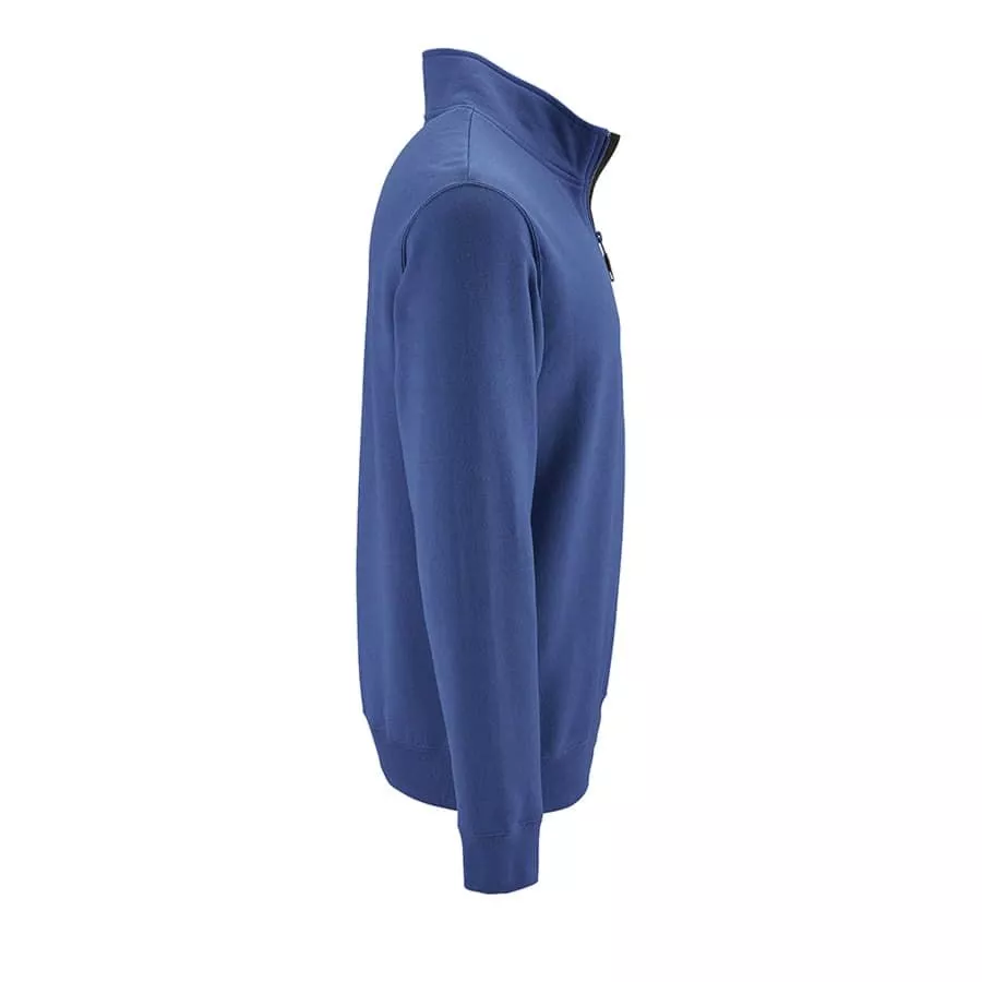 Мужской свитшот с начесом и воротником-стойкой на молнии. Манжеты и низ изделия обработаны резинкой. Внутренняя планка контрастного цвета. Лейбл с размером находится во шве горловины, лейбл производителя вшит в боковом шве изнутри.