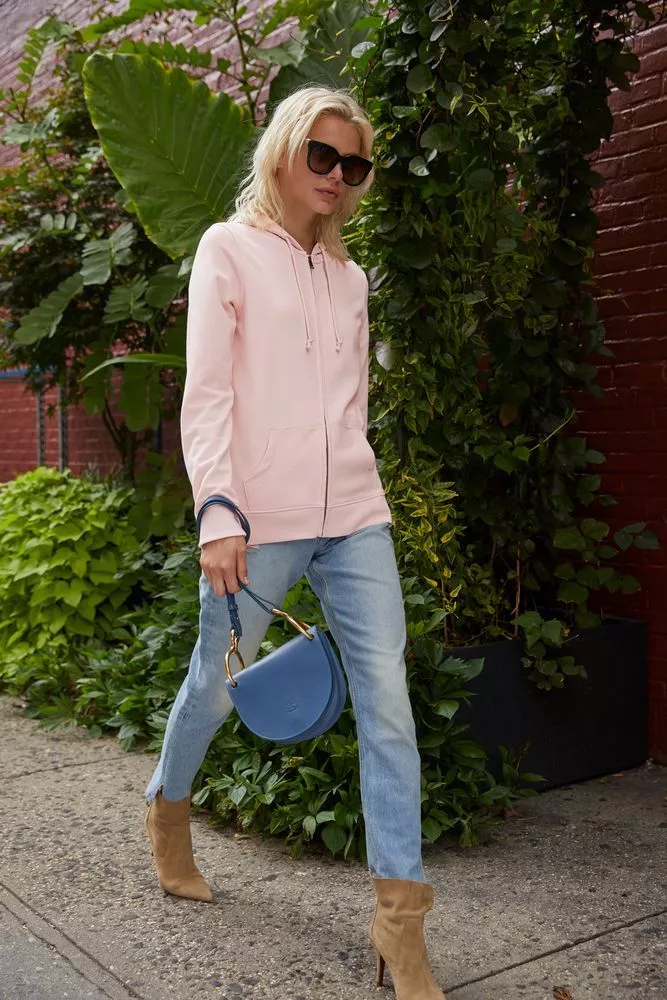 Женская толстовка из органического хлопка на молнии с капюшоном.