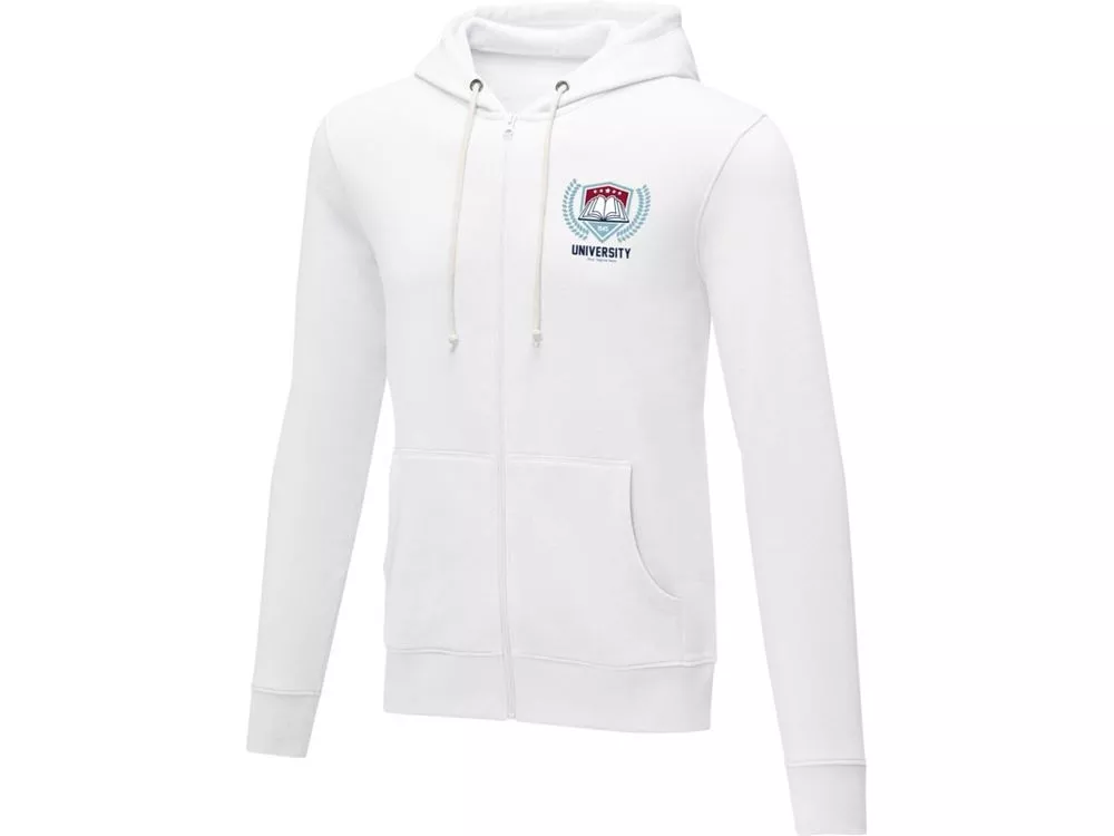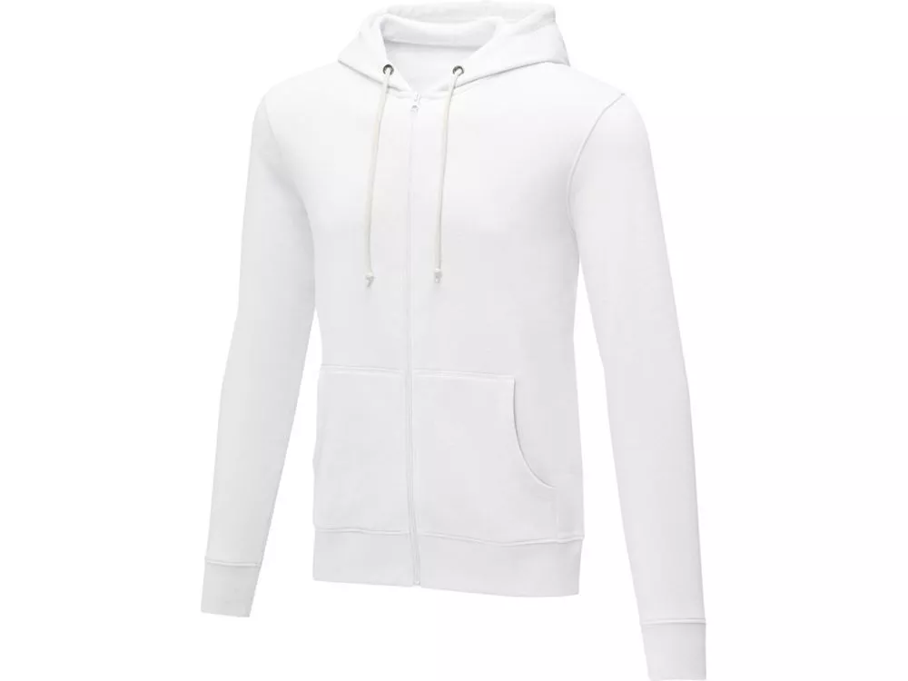 Мужская толстовка на молнии Theron. Возможность индивидуального брендинга. Основная этикетка, которую можно оторвать или отрезать, без неудобных пришитых ярлыков. Завязки на капюшоне. Расположенная по центру молния. Карман кенгуру. С подшивкой из гладкого трикотажа в рубчик. С манжетами из гладкого трикотажа в рубчик. Внутренняя сторона покрыта ворсом. Самоклеющаяся лента на воротнике. Трикотаж 50% Хлопок, 50% Полиэстер, 240 g/m2.