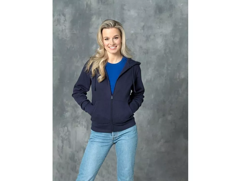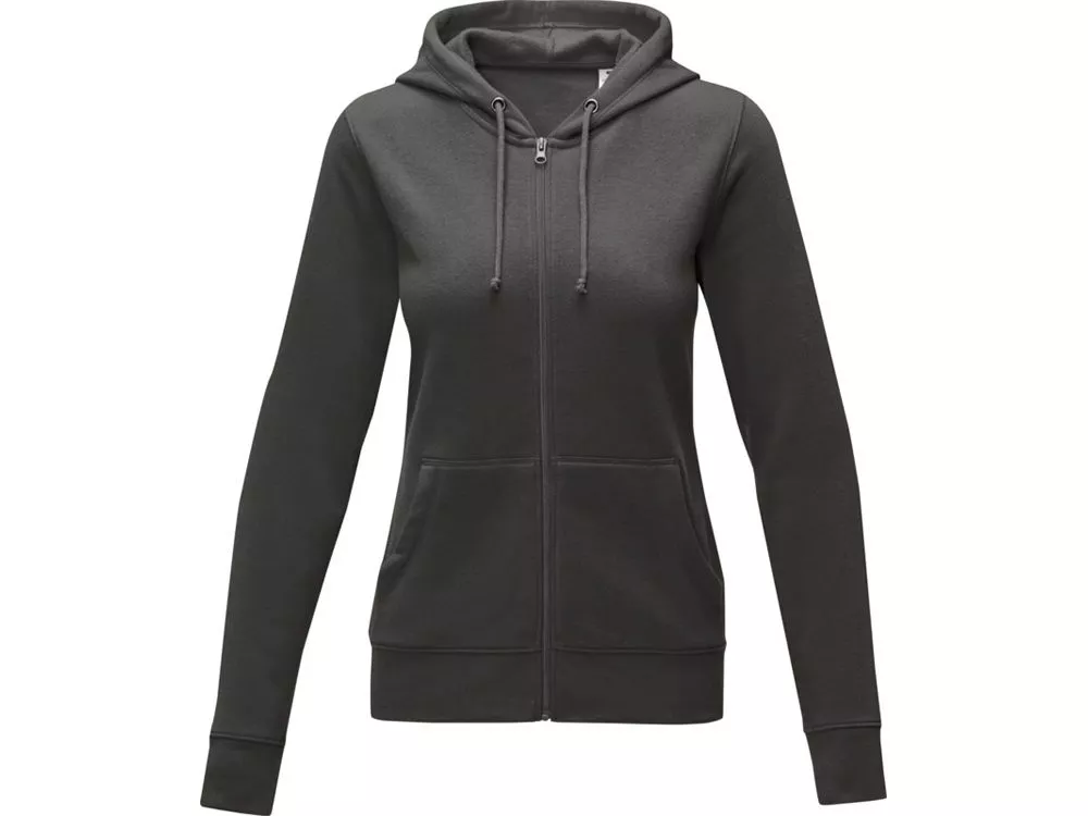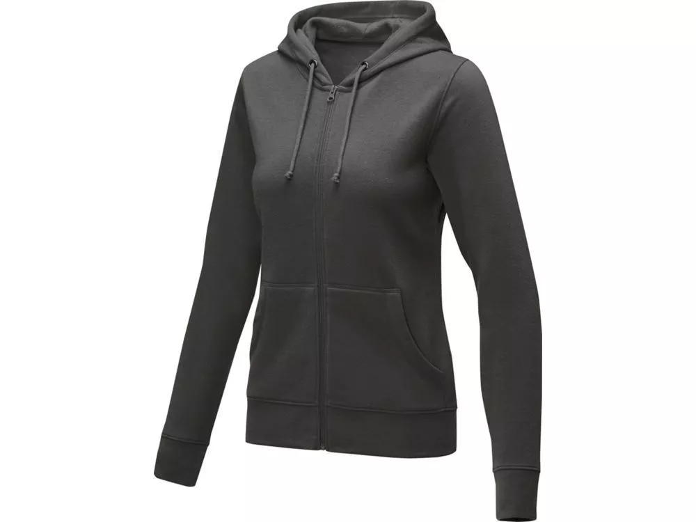 Женская толстовка на молнии Theron. Возможность индивидуального брендинга. Основная этикетка, которую можно оторвать или отрезать, без неудобных пришитых ярлыков. Завязки на капюшоне. Расположенная по центру молния. Карман кенгуру. С подшивкой из гладкого трикотажа в рубчик. С манжетами из гладкого трикотажа в рубчик. Внутренняя сторона покрыта ворсом. Самоклеющаяся лента на воротнике. Придающие форму швы и зауженная талия для ровного прилегания. Трикотаж 50% Хлопок, 50% Полиэстер, 240 g/m2.