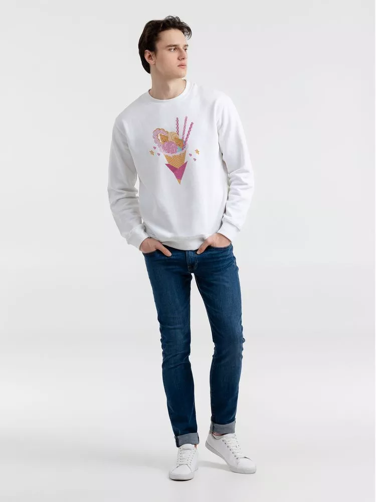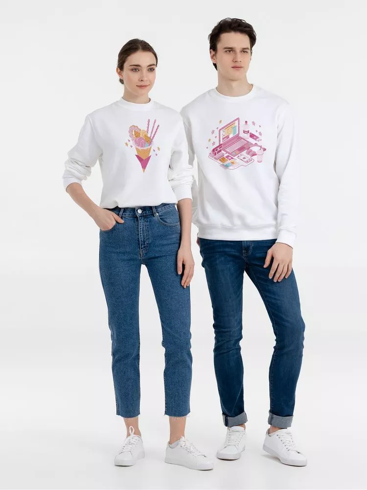 Толстовка унисекс с втачными рукавом. Изнанка: мольтон с начесом. Укрепляющая тесьма по вороту, манжеты, ворот и низ толстовки связаны резинкой с эластаном.
