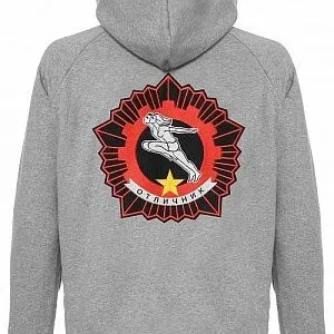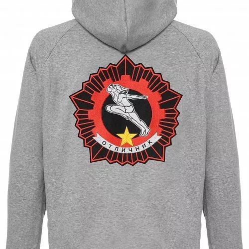 Толстовка с капюшоном Рукав реглан. Рельефная трикотажная резинка по низу рукавов и нижнему краю. Прорезные боковые карманы. Толстовка «Отличник» просто создана для тех, кто собирается бить рекорды в спорте, бизнесе или просто в жизни. За основу вышивки на спине был взят значок ГТО 1972 года:бегущая пара — девушка и юноша — на фоне пятиконечной звезды и вписанной в неё шестерёнки. На груди вышита кремлёвская звезда.ХАРАКТЕРИСТИКИ:Коллекция: Безусловные знакиМатериал: 70% хлопок / 30% полиэстерРазмер: M