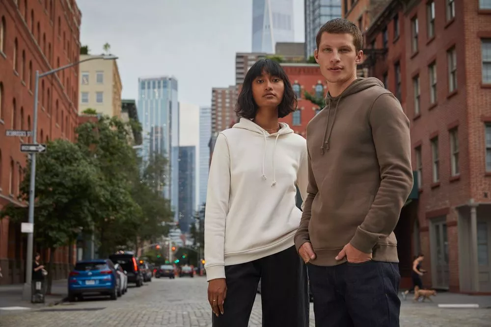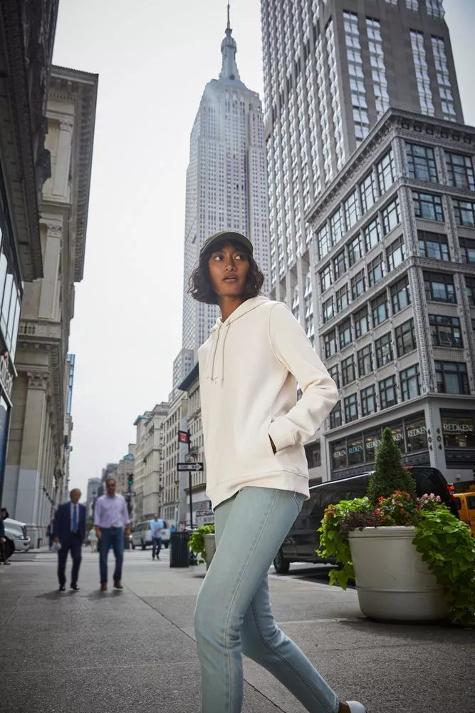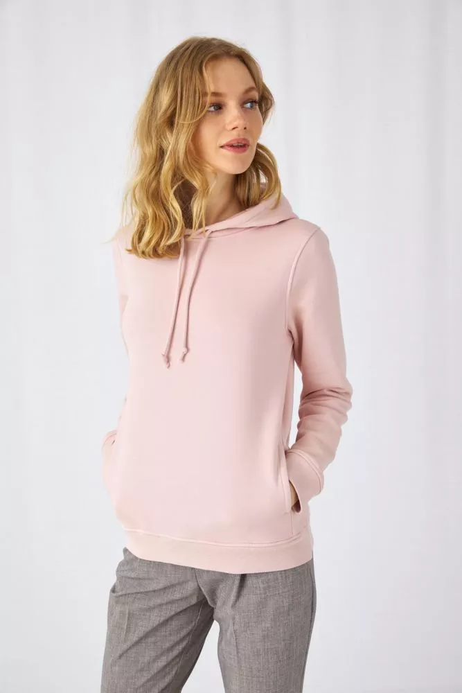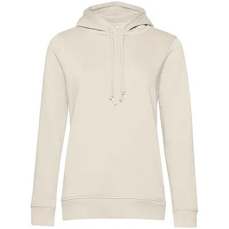 Женская толстовка из органического хлопка с капюшоном и втачными карманами. Края рукава и низ изделия выполнены резинкой. Внутренняя сторона с начесом.