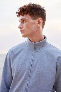 Толстовка унисекс на молнии без капюшона выполнена из хлопка с добавлением переработанного полиэстера.