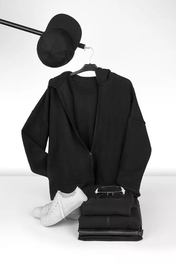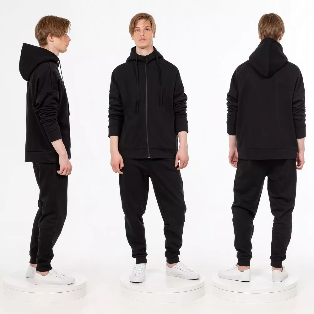 Базовая повседневная одежда актуального покроя в стиле унисекс разработана в рамках единой коллекции и легко собирается в комплекты. Специально спроектированные лекала и технологии пошива открывают простор для любых вариантов кастомизации и нанесения изображений. На изделиях нет лейблов с айдентикой бренда — но предусмотрены петельки для навешивания индивидуальных этикеток.