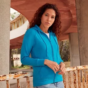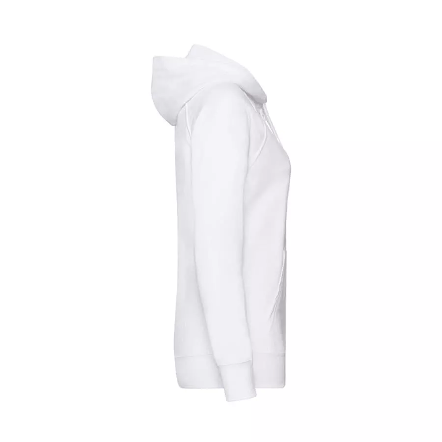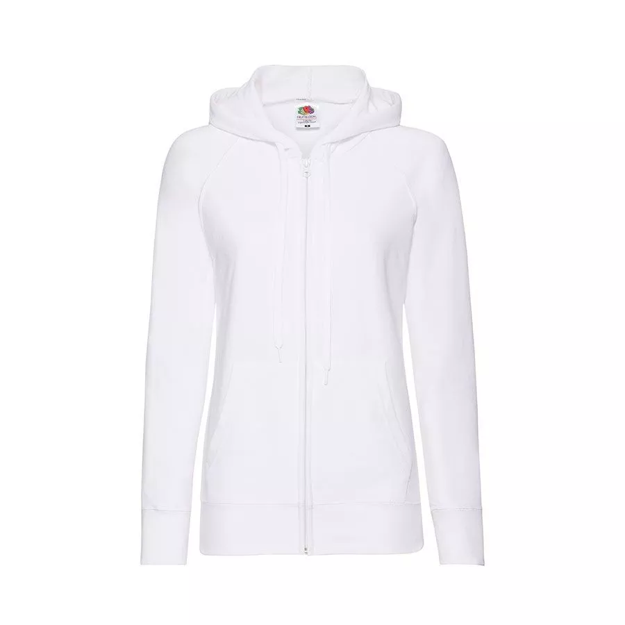 Футровая ткань без начеса изнутри. Капюшон с плоским вытяжным шнуром в тон изделия. Рукава-реглан. Фасонные боковые швы для более женственной посадки. Два передних кармана. Скрытая пластиковая молния в тон для нестандартной печати.