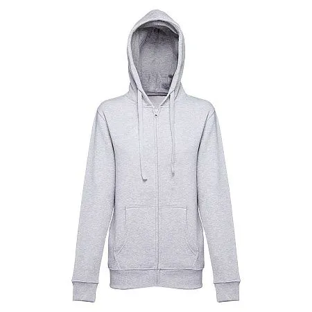 Толстовка с капюшоном на молнии. Внутренняя сторона с начёсом. Подкладка в капюшоне из тонкого трикотажа в тон основного полотна. Потайная центральная молния. Манжеты и низ изделия обработаны рибом 1х1.