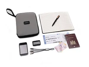 Хороший корпоративный подарок для путешествующих, снабженный многими функциями. Кроме путешествий портмоне можно использовать для хранение карт и документов дома. Выполнен из водостойкого и долговечного переработанного полиэстера с покрытием от загрязнения. Внутреннее отделение вмещает документы формата А5, iPad mini, электронную книгу. - эластичный карман спереди - большое отделение на молнии, где можно удобно хранить паспорт, билеты, карточки, ручки и пр. - удобная ручка для переноски или подвешивания Комплектуется 2мя съемными шильдами под нанесение вашего логотипа - металлическим и из эко кожи. Гравировка (оптоволоконный лазер) (Без чернения) на данный товар осуществляется бесплатно. Оплачивается только настройка оборудования в размере 1100 рублей на весь тираж.