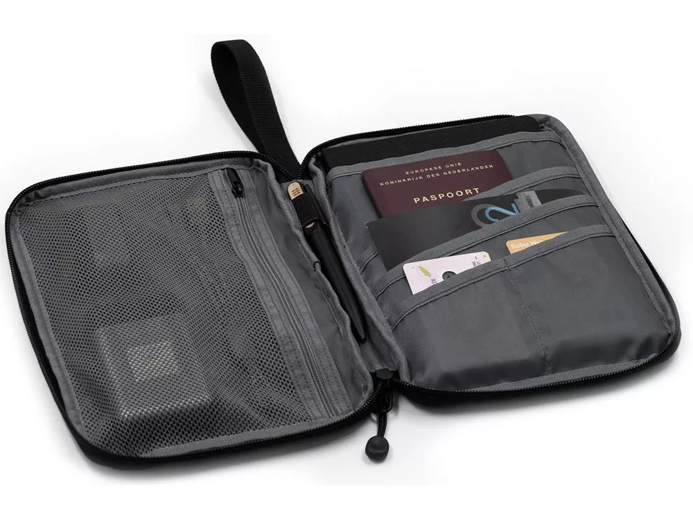 Хороший корпоративный подарок для путешествующих, снабженный многими функциями. Кроме путешествий портмоне можно использовать для хранение карт и документов дома. Выполнен из водостойкого и долговечного переработанного полиэстера с покрытием от загрязнения. Внутреннее отделение вмещает документы формата А5, iPad mini, электронную книгу. - эластичный карман спереди - большое отделение на молнии, где можно удобно хранить паспорт, билеты, карточки, ручки и пр. - удобная ручка для переноски или подвешивания Комплектуется 2мя съемными шильдами под нанесение вашего логотипа - металлическим и из эко кожи. Гравировка (оптоволоконный лазер) (Без чернения) на данный товар осуществляется бесплатно. Оплачивается только настройка оборудования в размере 1100 рублей на весь тираж.