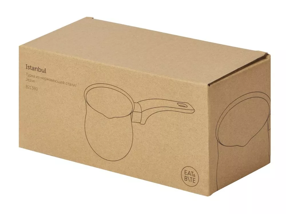 Турка от Eat&Bite с толстыми стенками позволит сварить настоящий ароматный напиток из любых сортов кофе, даже тех, что не подходят для кофемашин. А ещё приготовление кофе в турке — это целая завораживающая церемония, которая способна задать настроение на весь день. Ручка Istanbul выполнена из бакелита, благодаря чему она не нагревается. На абсолютно гладком корпусе из нержавеющей стали будет выгодно смотреться брендирование методом гравировки. А также этот материал не скапливает бактерии, устойчив к плесени и не вступает в реакцию с содержимым, благодаря чему не влияет на вкус и аромат напитка. Istanbul очень проста в уходе и использовании, но её нельзя мыть в посудомоечной машине и, как любую другую посуду из нержавейки, разогревать в микроволновой печи. • Лаконичный дизайн • Не нагревающаяся ручка из бакелита • Толстые стенки • Большая поверхность для нанесения • Подходит для всех типов плит • Объем 280 мл Гравировка (оптоволоконный лазер) (Без чернения) на данный товар осуществляется бесплатно. Оплачивается только настройка оборудования в размере 1100 рублей на весь тираж.