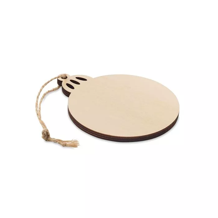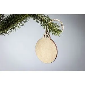 Рождественское украшение из фанеры для сублимации на джутовой тесьме в форме шара. Нанесение белым цветом не возможно.