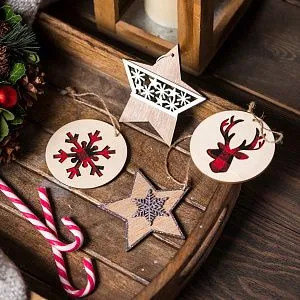 Деревянные новогодние украшения имеют давнюю историю. Это самый первый материал, из которого изготавливали елочные игрушки еще наши предки. Сегодня эти украшения также пользуются огромной популярностью, ведь деревянные фигурки олицетворяют собой сказку, детство, ожидание чуда. А что может быть лучше природного материала? Игрушки из дерева экологичны, а потому наиболее гармонично смотрятся на новогодней елке.Помимо прочего, в отличие от стеклянных игрушек, они не бьются и абсолютно безопасны для детей. Украшения из дерева не требуют особых условий хранения и великолепно персонализируются.