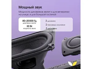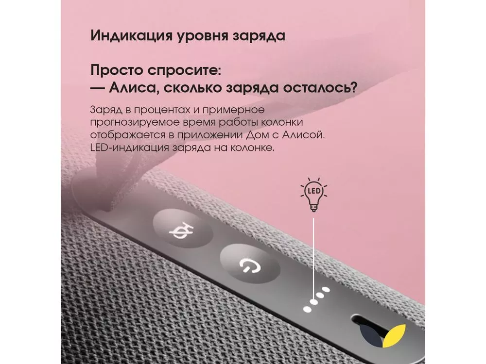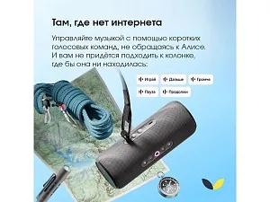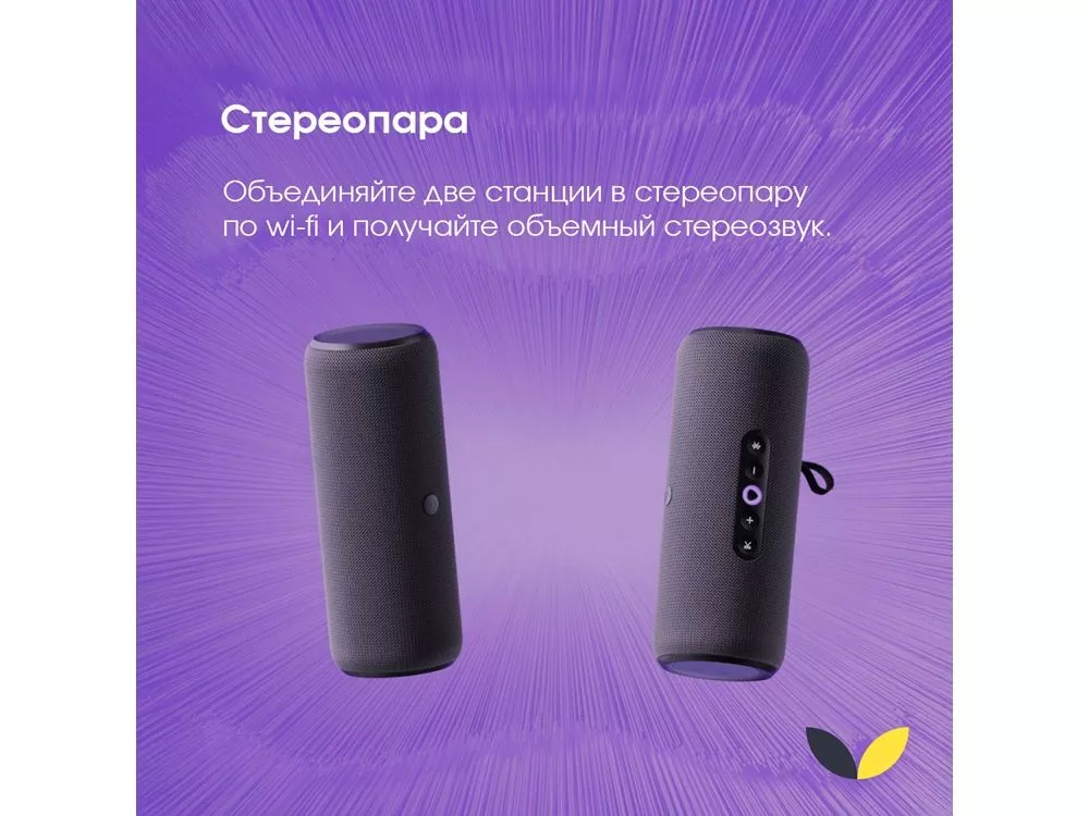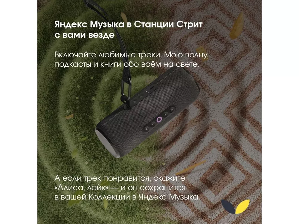 Станция Стрит - первая портативная Станция с Алисой. Портативная умная колонка Яндекса с мощным звучанием, AI-ассистентом и ёмким аккумулятором. Берите с собой Алису, куда бы вы ни отправились. Управляйте любимой музыкой голосом по Wi-Fi ® и Bluetooth®. Если вы оказались совсем без связи и мобильного интернета, просто подключите Станцию Стрит к смартфону по Bluetooth и включайте на ней свою музыку с телефона. Многолетний опыт экспертов Яндекса в разработке и настройке акустики делает звучание Станции Стрит таким мощным, чистым и ярким. Станция Стрит будет звучать на улице и дома одинаково сбалансированно, ярко и сочно. Встроенные микрофоны и специальные алгоритмы анализируют отражение звука и в режиме Смарт позволяют колонке определить, где она находится: на улице или внутри, и автоматически адаптировать звук. По желанию можно выбрать режим Помещение или Улица вручную в приложении Дом с Алисой. Две Станции Стрит можно объединить в стереопару по Wi-Fi. Это специальный режим, который обеспечивает объёмный стереозвук. Аккумулятор Станции Стрит готов к долгой работе в самых разных условиях. А когда умная колонка разрядится, вам потребуется совсем немного времени для её подзарядки. Заряд в процентах и примерное прогнозируемое время работы колонки отображается в приложении Дом с Алисой. А если неудобно заглядывать в телефон, просто спросите: — Алиса, сколько заряда осталось? Когда уровень заряда аккумулятора Станции Стрит опустится до 10%, она сообщит вам об этом звуковым сигналом и пришлёт push-уведомление. Погода бывает непредсказуемой, а планы иногда меняются буквально на ходу. Станция Стрит к этому готова, ведь её дизайн продуман так, чтобы вы могли использовать умную колонку в разных природных условиях. Благодаря высокому классу защиты IP67 Станция Стрит устойчива к пыли и воде. Если вы попадете под дождь с умной колонкой или случайно уроните ее в воду, с ней ничего не случится. Характеристики: Управление музыкой голосом по Wi-Fi ® и Bluetooth®; AI-ассистент; 30 Ватт: 2 динамика; 2 пассивных излучателя; 3 микрофона; Режимы звучания для улицы и помещения; Возможность создания стереопары; Аккумулятор 3300 мАч; До 12 часов непрерывного прослушивания музыки; Индикация уровня заряда; Быстрый заряд за 30 мин. на 4 часа работы; Защита от пыли и воды IP67.