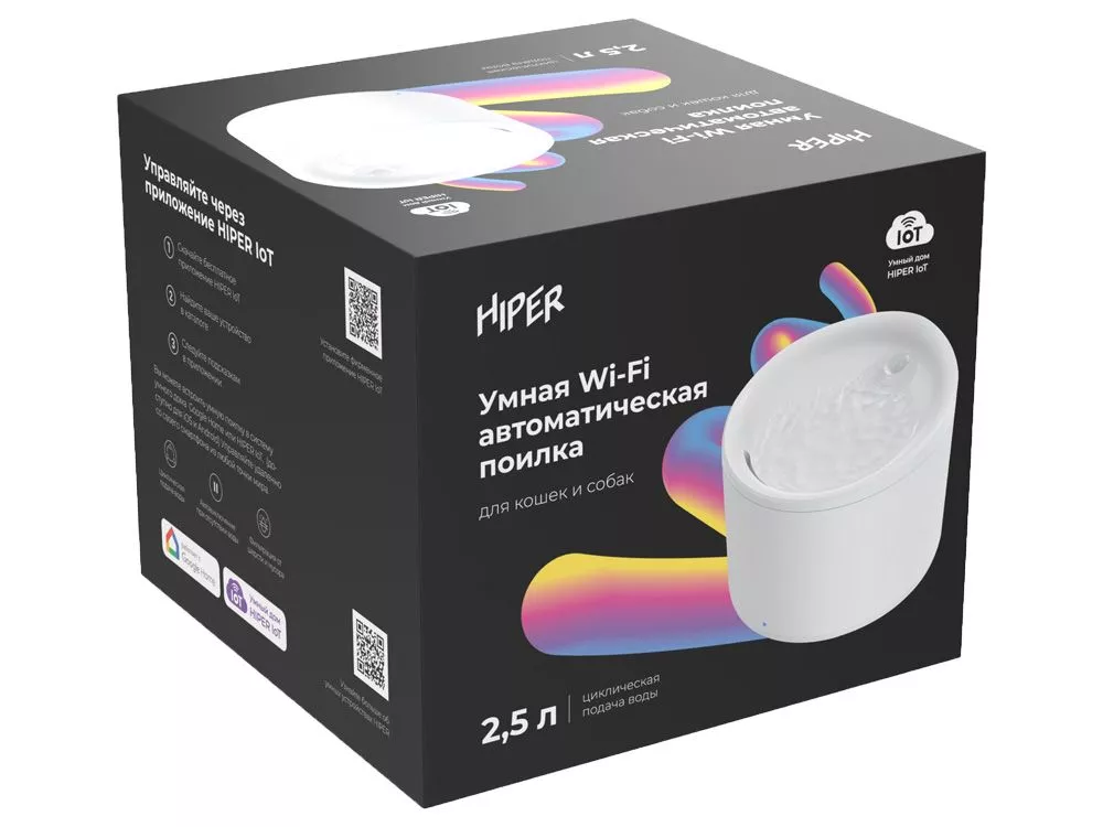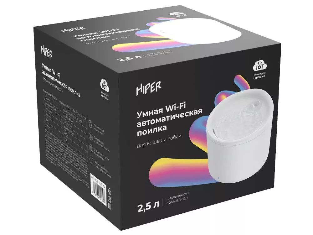 Автопоилка с фонтанчиком HIPER обеспечит домашних питомцев чистой питьевой водой в течении длительного времени, даже когда поблизости нет никого из домочадцев. Поилка имеет объем 2,5 литра – этого хватит взрослой кошке на 7-10 дней. Специальная система фильтрации позволяет воде все время циркулировать, очищаясь от пыли, шерсти и мелкого мусора, поэтому ваш питомец будет иметь в доступе всегда чистую и свежую воду. Кормушка поддерживает Wi-Fi и может управляться дистанционно с помощью приложения HIPER IoT, абсолютно бесплатного и доступного для всех смартфонов на Android и iOS. Устройство имеет функцию авто выключения, когда в нем недостаточно воды. ABS-пластик, из которого изготовлена кормушка безопасен для людей и животных. УФ-печать (УФ-печать цветные изделия) на данный товар осуществляется бесплатно. Оплачивается только настройка оборудования в размере 1800 рублей на весь тираж.