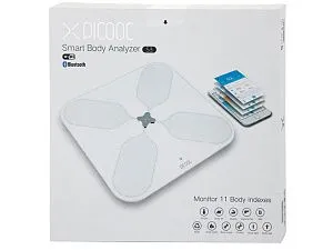 Picooc S3 - флагманская модель весов, которая синхронизируется с облачным сервисом производителя посредством Wi-Fi соединения или с мобильным устройством при помощи Bluetooth Smart. Весы определяют 12 параметров: вес, ИМТ, общий процент содержания жировых тканей, процент висцерального жира, белка, базальный метаболизм, мышечную массу, костную массу, процент содержания воды, массу скелетных мышц, тип и бальную оценку телосложения, а так же биологический возраст. А еще в приложении реализован функционал для отслеживания изменений в обхвате различных частей тела и используются разные алгоритмы анализа состава тела в зависимости от расовых особеностей. • Продуманное и удобное оригинальное приложение на русском языке. • Возможность постановки цели, советы по достижению, анализ состояния здоровья. • Возможность подключения по WIFI (2.4GHz) и Bluetooth 4.0 и синхронизация с облаком. • Совместимость с Health экосистемами производителей смартфонов. • Прочное закаленное стекло 6 мм и скрытый светодиодный дисплей. • Неограниченное количество пользователей и автораспознавание. • Питание: аккумуляторы/батарейки AA х 4 шт. • Диапазон веса 8 - 150 кг. • Процессор Dual Core обеспечивает время реакции 3-4 секунды. • Совместимость с устройствами: iOS 8.0 и выше, Android 4,3 и выше. • Увеличенный размер 33.2 х 33.2 х 2.4 см.