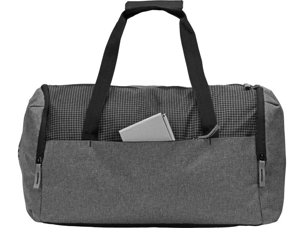 Благодаря вставке со светоотражающими элементами сумка будет заметна и обеспечит дополнительную защиту даже в темное время суток. Легка и очень вместительная, с наружным и боковым карманами на молнии. Отделение для хранения обуви с вентиляционным клапаном. Ручки фиксируются вместе застежкой -липучкой. Термотрансфер (1 цвет (цветные изделия)) на данный товар осуществляется бесплатно. Оплачивается только настройка оборудования в размере 7700 рублей на весь тираж.