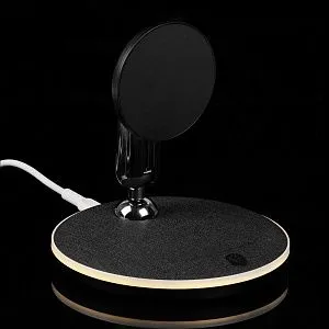 Модели iPhone 12–15 c магнитами MagSafe могут заряжаться в наклонном положении. Крупные смартфоны без магнитного удержания можно разместить вертикально. Ранние или компактные модели iPhone или смартофоны с диагональю 5,7–6" на OS Android можно оснастить специальным адаптером. При отсутствии магнитного адаптера такой телефон тоже можно зарядить на Power Canvas — шарниры станции позволяют расположить зарядную область горизонтально и разместить на ней смартфон для точного совпадения центра задней крышки с центром зарядки.