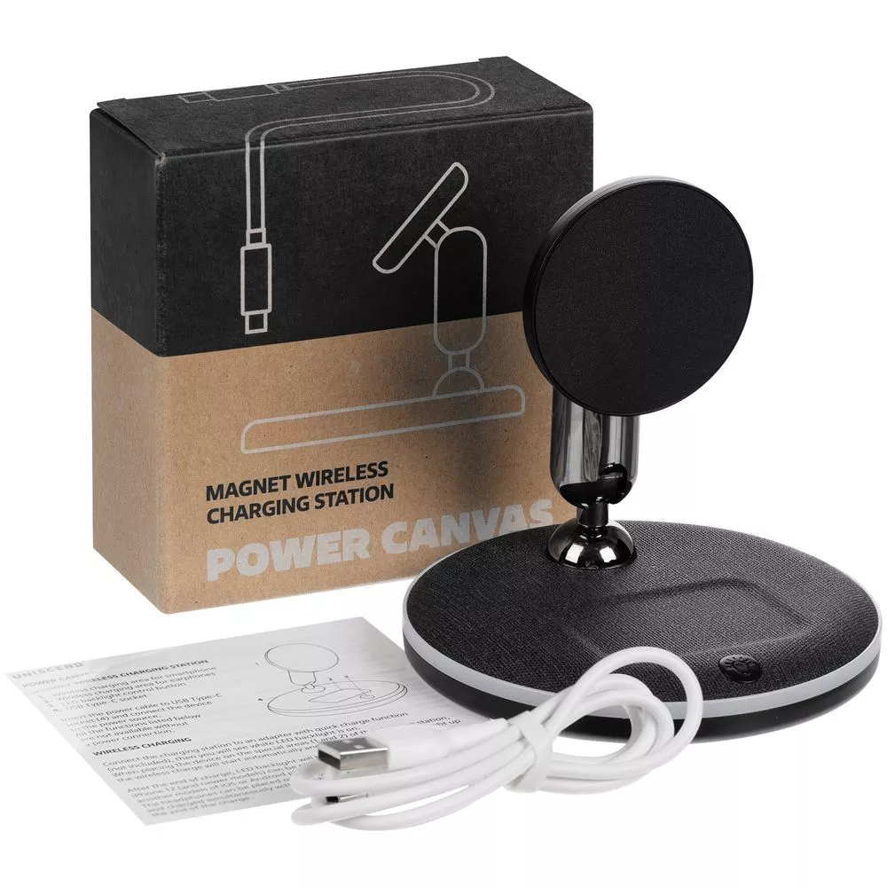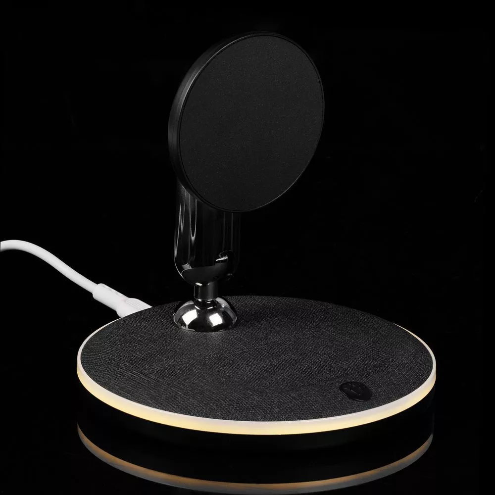 Модели iPhone 12–15 c магнитами MagSafe могут заряжаться в наклонном положении. Крупные смартфоны без магнитного удержания можно разместить вертикально. Ранние или компактные модели iPhone или смартофоны с диагональю 5,7–6" на OS Android можно оснастить специальным адаптером. При отсутствии магнитного адаптера такой телефон тоже можно зарядить на Power Canvas — шарниры станции позволяют расположить зарядную область горизонтально и разместить на ней смартфон для точного совпадения центра задней крышки с центром зарядки.